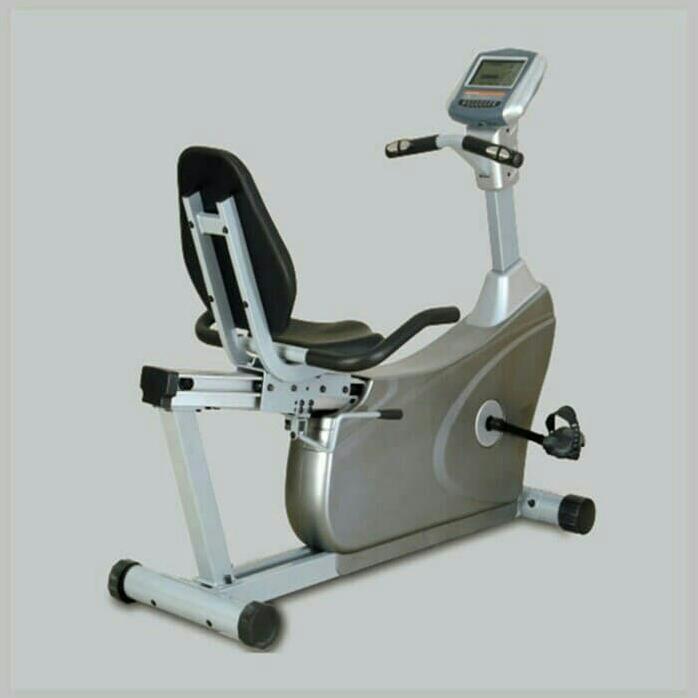 - Tampilan monitor : rpm, waktu, kecepatan, jarak, kalori, watt, pulsa, lemak tubuh