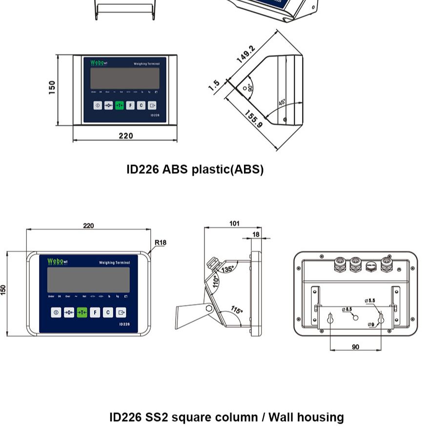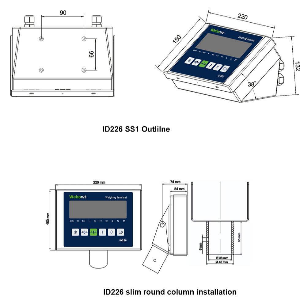 ID226, Plastic Desk, No battery, BlueTooth, Green LED display, two serial port (RS232 + RS485), MODBUS-RTU, Check Weighing & Classify / Counting / Animal Weighing, English, Round bracket