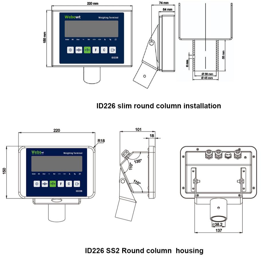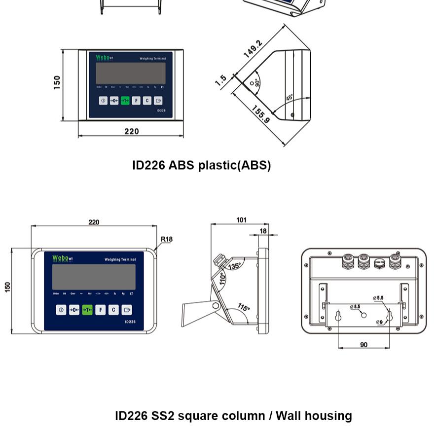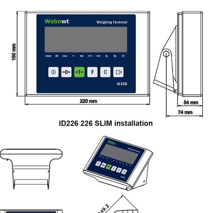 ID226, SS, Desk (Same to MT IND226),IP66,Lead-acid charge Battery,RED LED display, two serial port (RS232 + RS485), MODBUS- RTU, Check Weighing & Classify / Counting / Animal Weighing, English