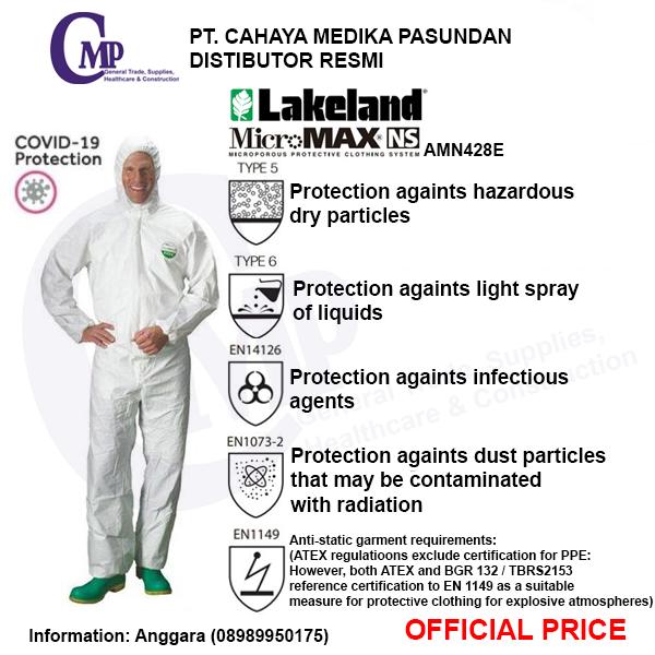 • MicroMAXe NS menawarkan perlindungan cairan dan debu yang unggul dengan kenyamanan dan daya tahan yang baik. Film laminasi Microporous menggabungkan perlindungan superior dengan kain yang nyaman, lembut dan fleksibel.